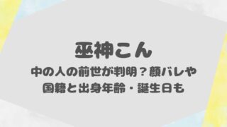 巫神こんの中の人の前世が判明?巫神こんの中の人は顔バレしてる?巫神こんの中の人の国籍は?巫神こんの中の人の出身年齢・誕生日などプロフィール!このような疑問を解決しています。本記事では、巫神こんの中の人の前世が判明?顔バレや国籍と出身年齢・誕...