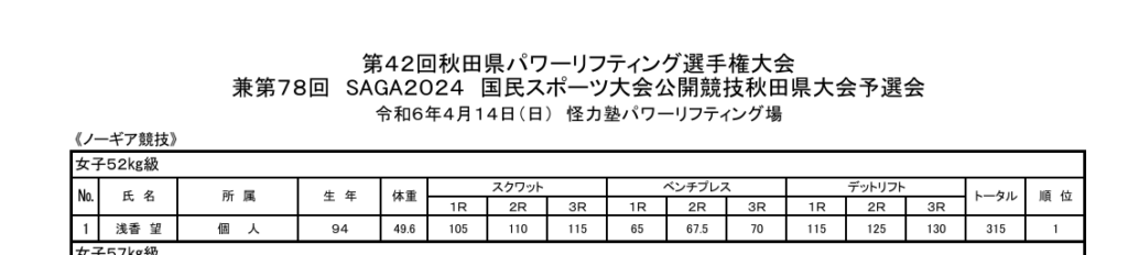 理由は、第42回秋田県パワーリフティング選手権大会の出場リストに「浅香望」とあり、生年「94」と記載されていたからです。