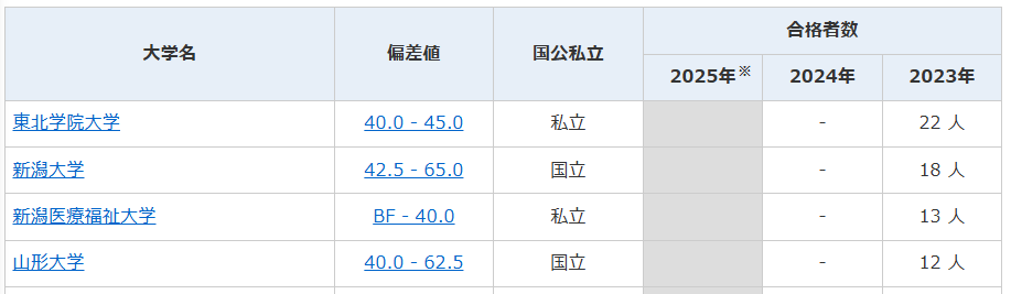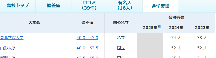 ちなみに、山形大学へ進学者が多い高校はこちら。
