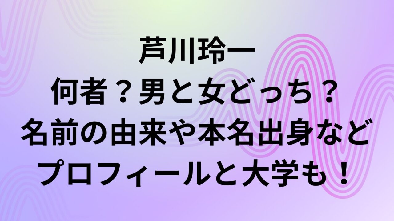 本記事では、芦川玲一は何者?男と女どっち?名前の由来や本名出身などプロフィールと大学も調査していきます。