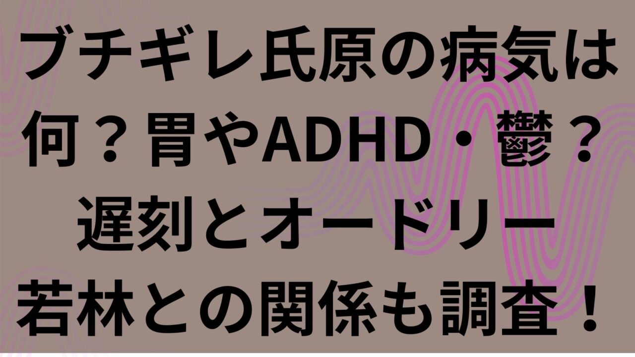 - ブチギレ氏原さんの病気と言われる場所は胃・ADHD・鬱?