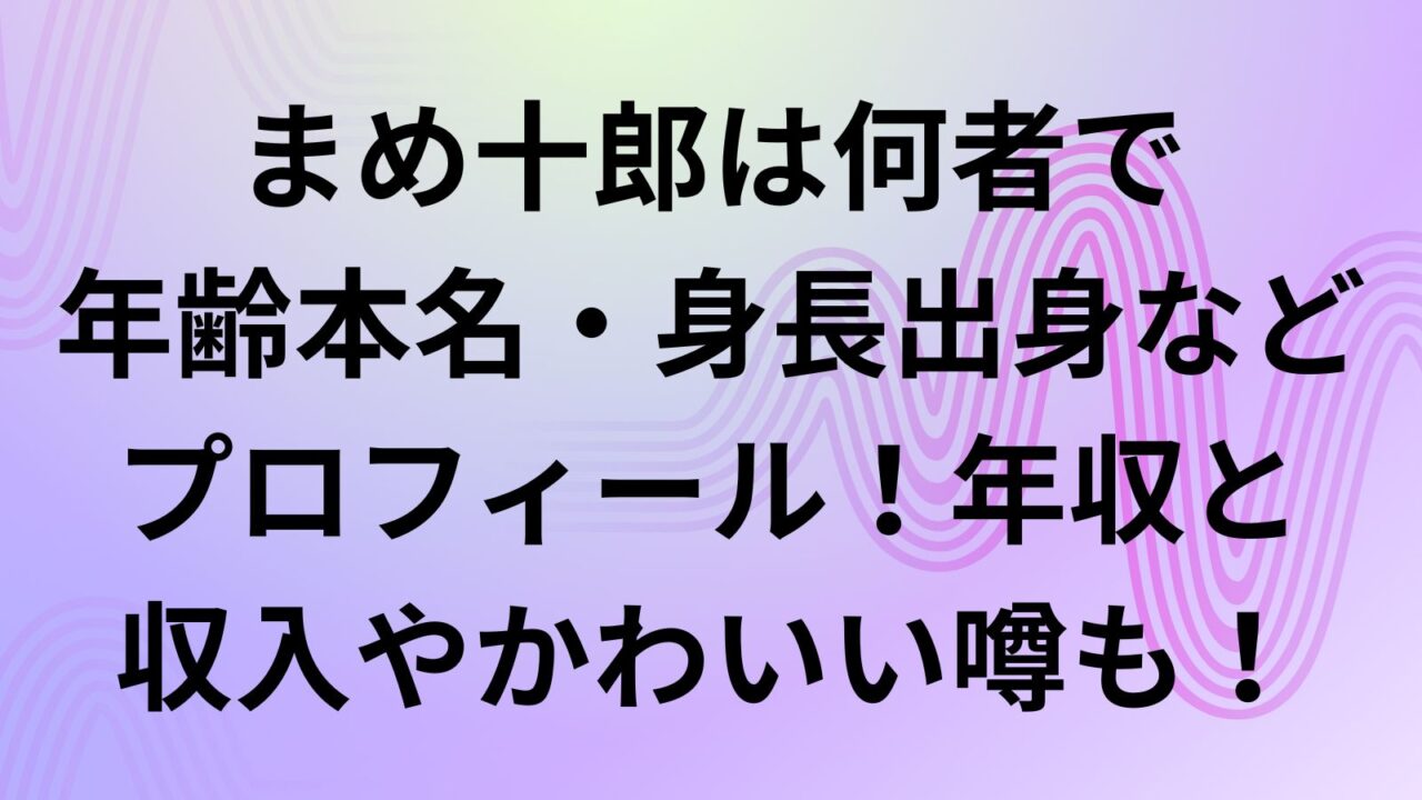 本記事では、まめ十郎は何者で年齢本名・身長出身などプロフィール!年収と収入やかわいい噂も調査についてまとめていきます。