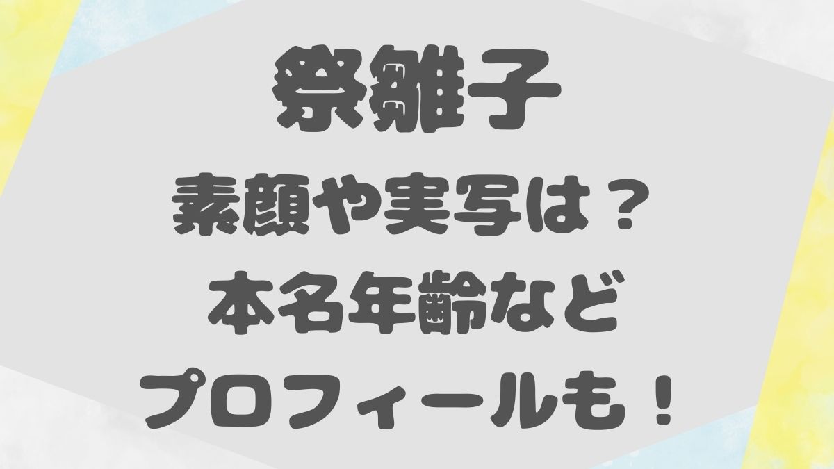 本記事では、祭雛子の素顔が判明?実写は?本名年齢などプロフィールも徹底調査していきます。