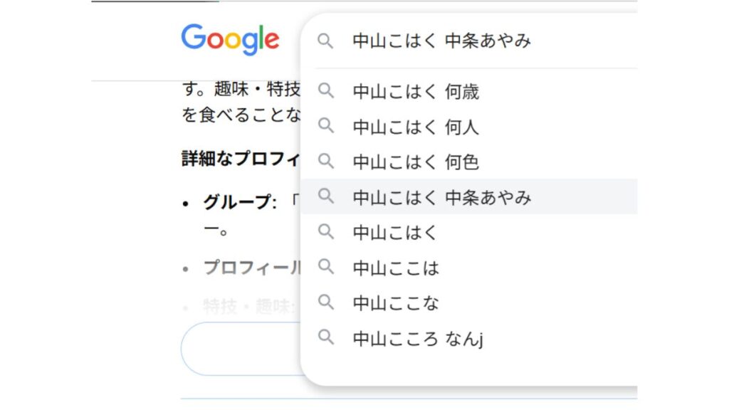 ただ、中山こはくさんは「中条あやみ」さんと似ていると言われており、Googleのサジェストにも「中山こはく 中条あやみ」とワードが出ています。