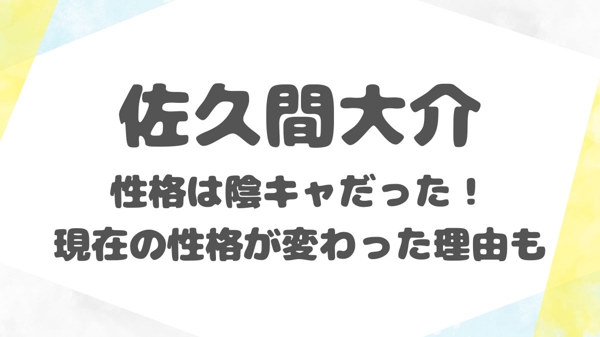 本記事では、佐久間大介の性格は陰キャだった!現在の性格が変わった理由も徹底調査しています。