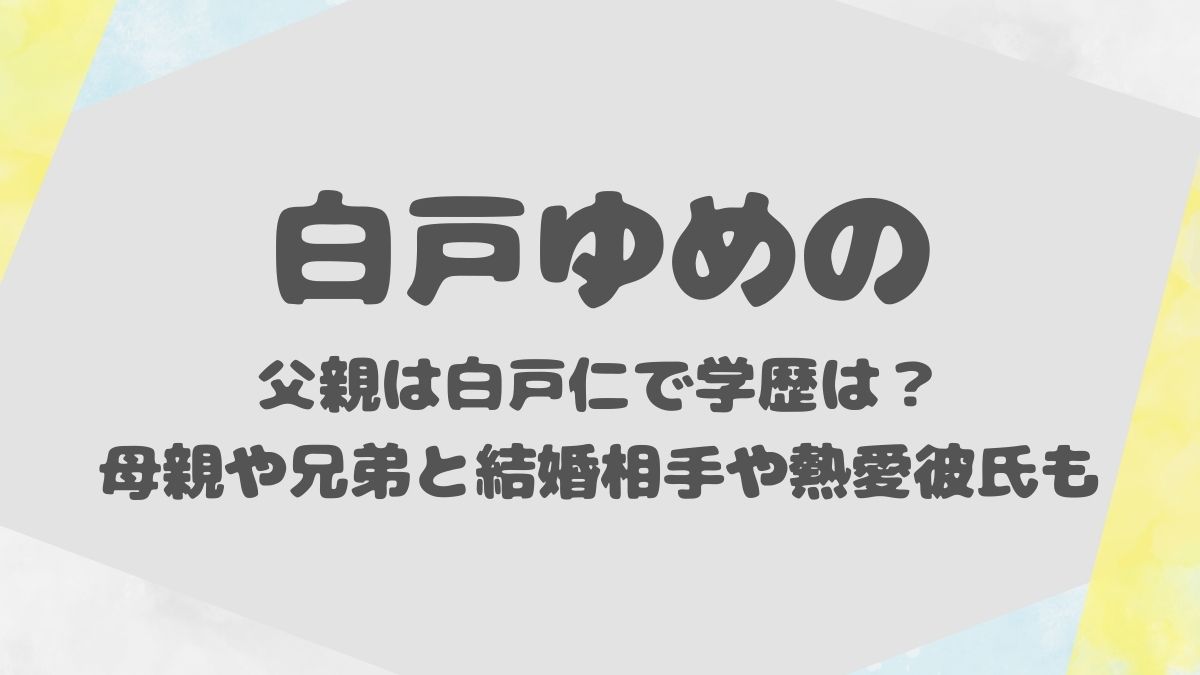 この記事では、白戸ゆめのの父親は白戸仁で学歴は?母親や兄弟と結婚相手や熱愛彼氏も徹底調査していきます。