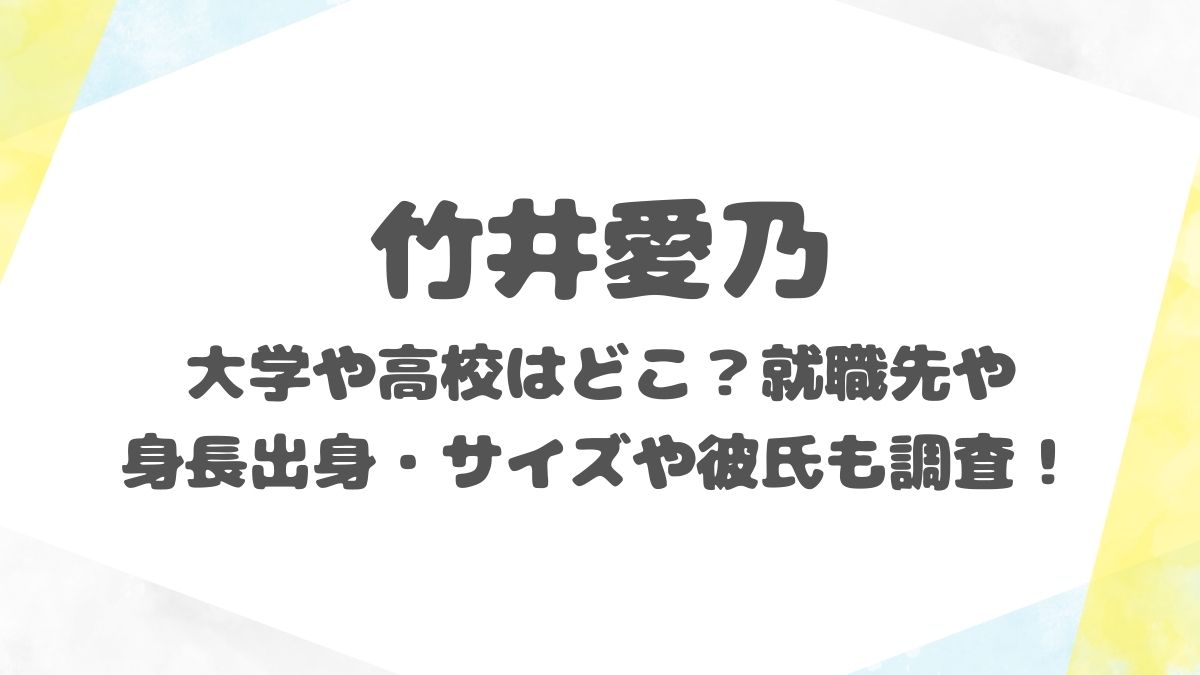 本記事では、竹井愛乃の大学や高校はどこ?就職先や身長出身・サイズや彼氏も調査しています。