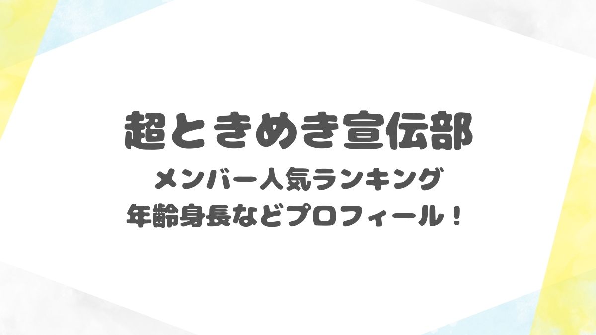 本記事では、超ときめき宣伝部メンバー人気順ランキング!年齢身長などプロフィールを徹底調査!について調査しています。