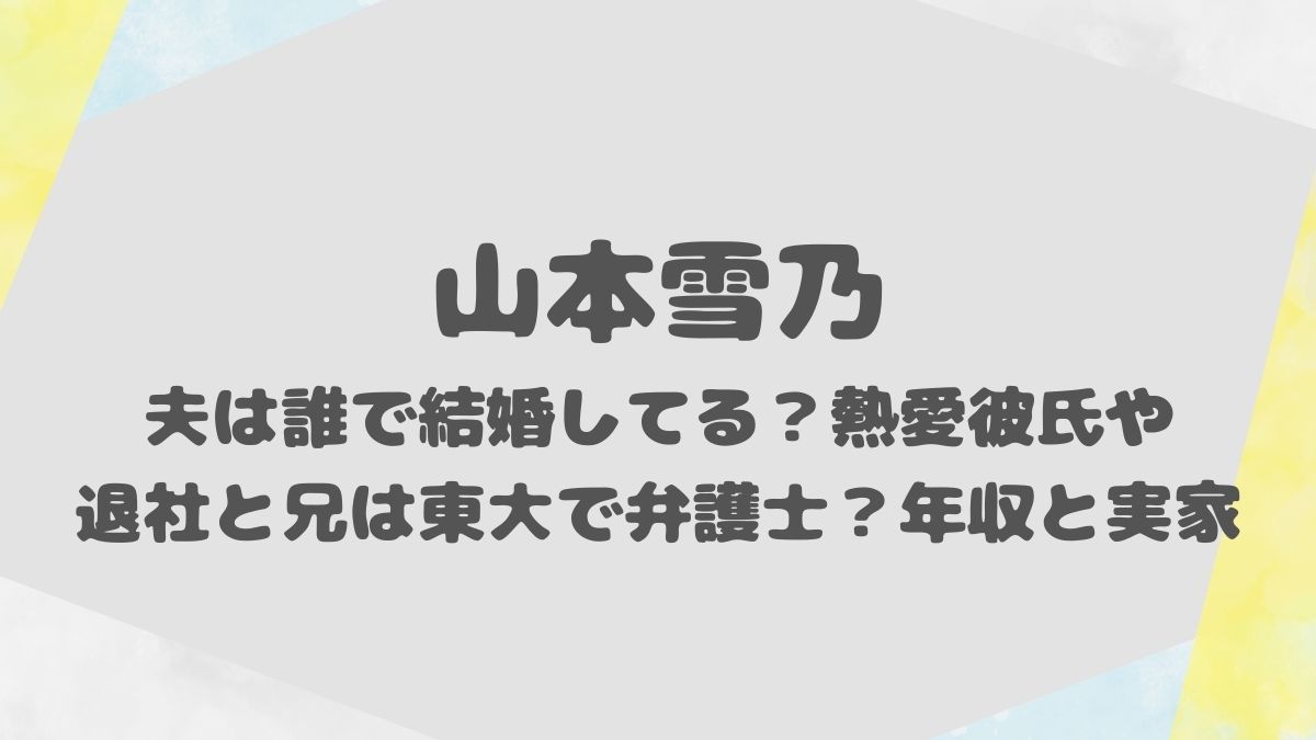 山本雪乃の夫は誰で結婚してる?熱愛彼氏や退社と兄は東大で弁護士?年収と実家などについて調査していきます。